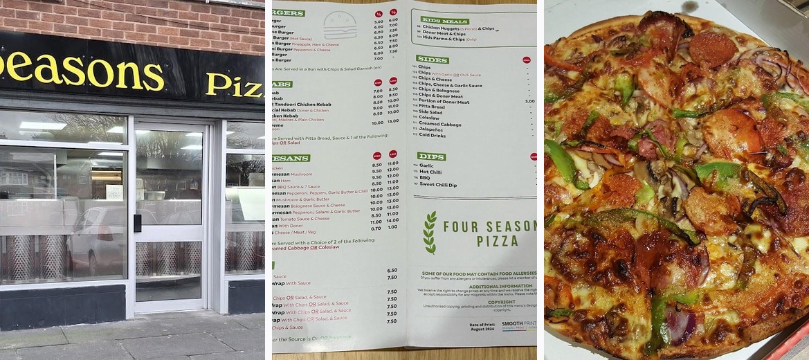 Savor the delicious flavors at Four Seasons Pizzeria in Stockton-on-Tees! Enjoy mouthwatering pizza, kebabs, and the renowned chicken parmigiana at unbeatable prices. Perfect for takeaway or delivery, we also highlight customer favorites like our garlic specialties. Order now at +44 1642 588000!